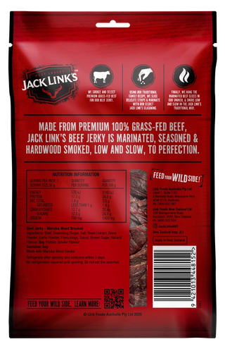 Slow cooked over manuka wood, this jerky's got that deep, smoky magic you can only get from premium cuts and a bit of patience. Subtle sweetness, rich aroma, and a flavour so real you can smell the campfire. It’s the taste of the wild, wrapped in every tender slice.